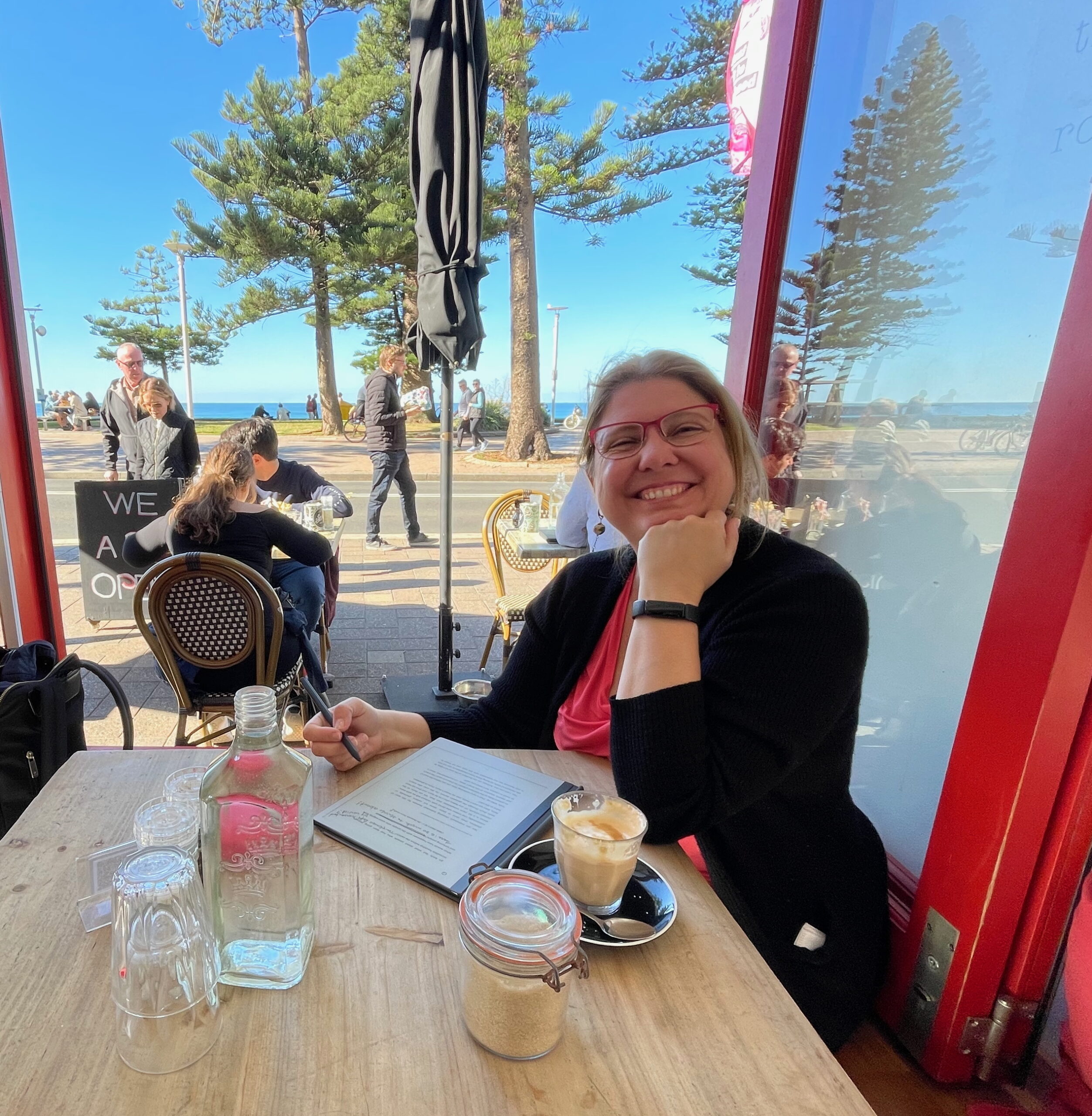 Nós nos encontramos online e após cada sessão eu me sinto como uma nova pessoa, muito mais centrada. Ela é alguém para quem posso mostrar meu lado mais vulnerável, soltar as barreiras, soltar meu lado forte. Ela foi fundamental para minha capacidade de manter minha sanidade e saúde durante um período muito sombrio e continuar sendo altamente produtiva criativamente.